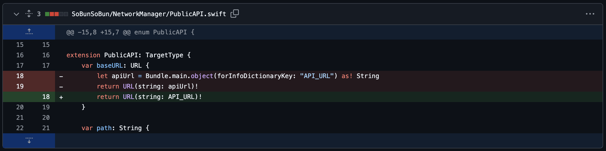 Bundle.main...으로 사용하던 apiUrl 주소를 Utils 파일에 있는 전역 변수인 API_URL로 변경